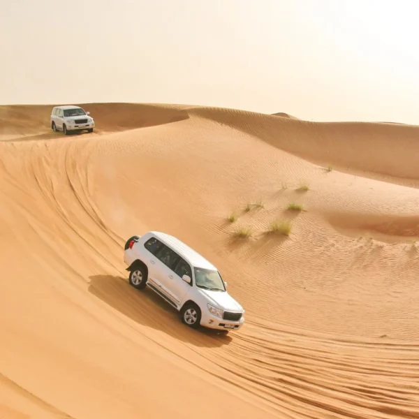 A morning desert safari takes you on an exciting 4x4 adventure across Qatar’s golden dunes. Enjoy the thrill of dune bashing, admire the beauty of the inland sea, and relax in the calm of the desert. The experience includes Arabic coffee, dates, soft drinks, camel rides, and sandboarding fun.